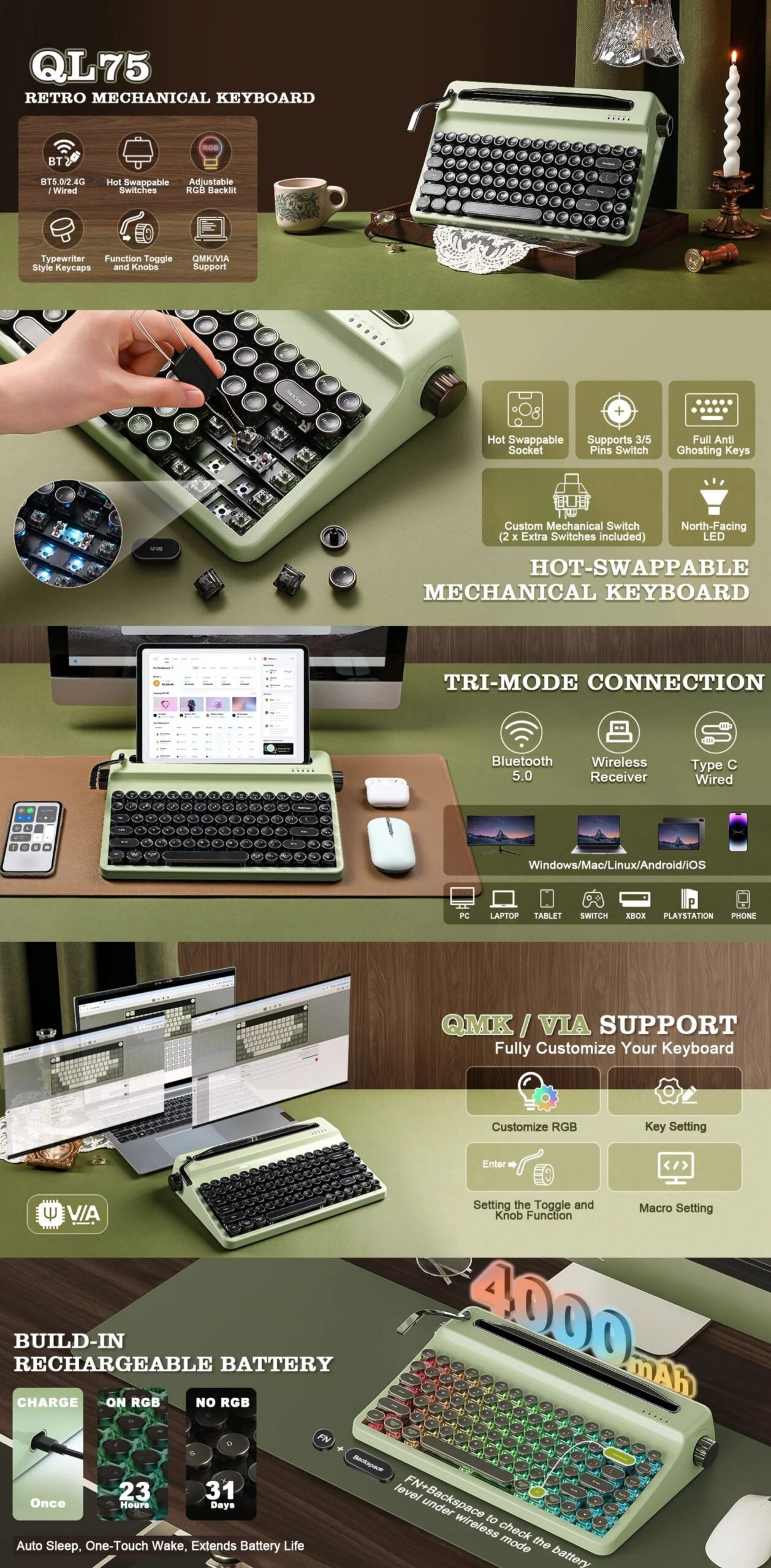 IT 리뷰 유튜버 잇템이 고마운 후원자 한 분께 YUNZII QL75 키보드를 선물해 드립니다. 아래 영상에서 리뷰 직후 리박싱한 제품입니다.